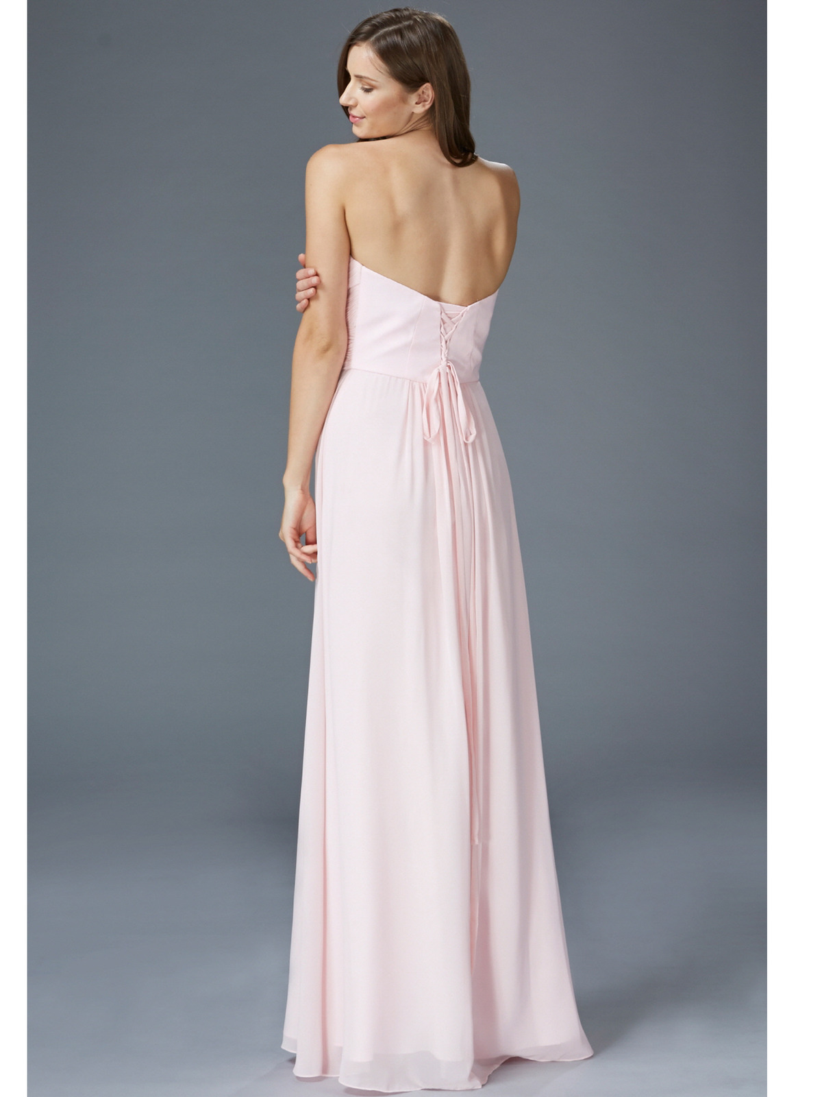 Artful ruching strapless sweetheart bodice of a sweeping chiffon prom dress with a full-length, floating skirt to complete the show stopping silhouette. -Approximate 53 inches from underarm to hem. -Crisscross back entry. -Fully lined. -Polyester. -Imported.