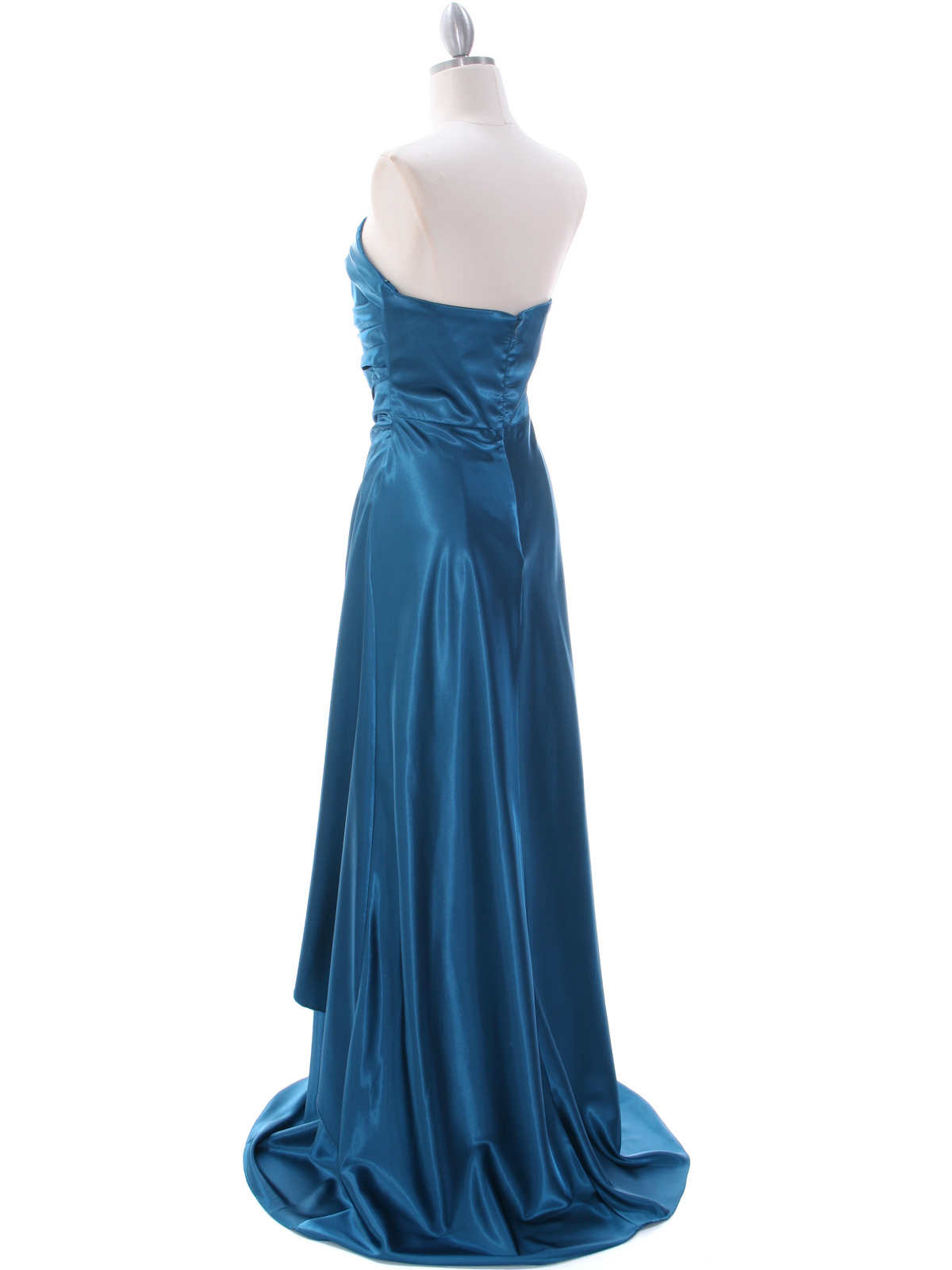 • 7700 Teal Charmeuse Evening Dress - Teal, Back View Medium