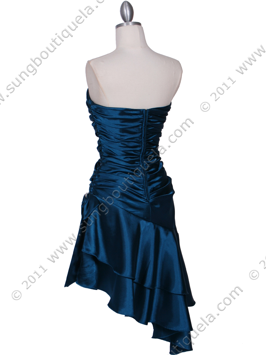 This beautiful strapless cocktail dress features pleated bodice with off center bow and tiered ruffled trim finished the look. - Matching shawl included. - Back zipper. - Approx. 34 in. from shoulder to hem. - Fully lined. - 100% polyester. - Imported.