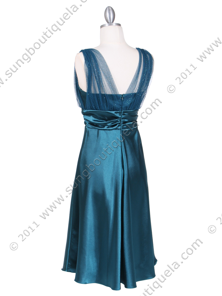 • 8474 Teal Glitter Tea Length Dress - Teal, Back View Medium
