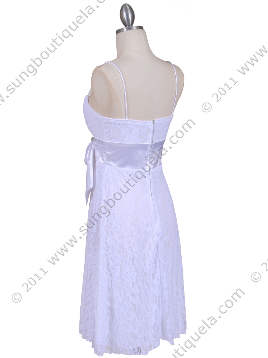 This beautiful lace cocktail dress features spagehtti straps with sweetheart neckline. Charmeuse waistband and bow adorn with a sparkling rhinestone pin. Simple and elegant. - Matching shawl included. - Back center zipper. - Padded bust with boned bodice. - Approx. 40 in. from shoulder to hem. - Fully lined. - 100% polyester. - Imported.