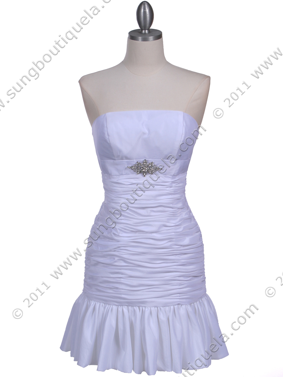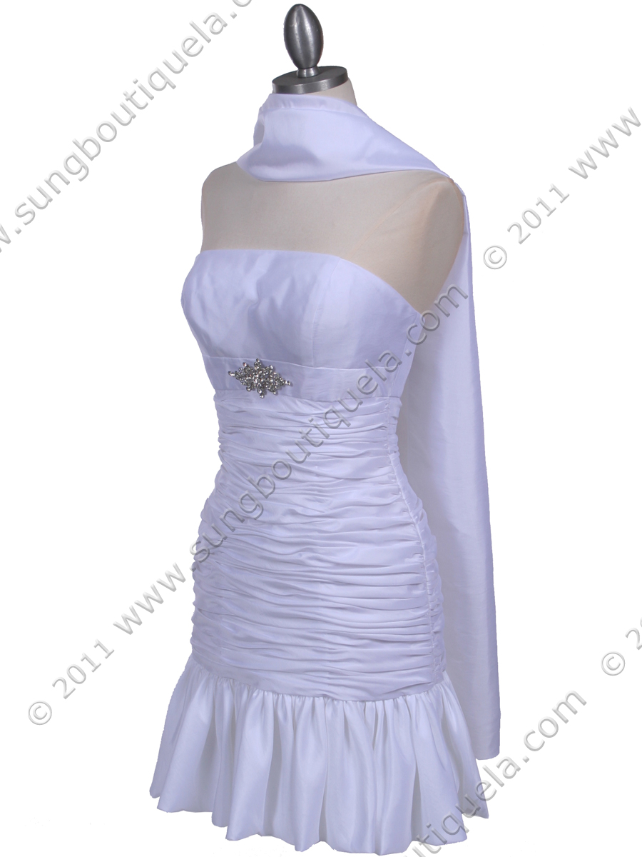 This beautiful taffeta cocktail dress features pleated well fitted bodice with sparkling rhinestone pin adorns the waist. - Matching shawl included. - Back zipper. - Padded Bodice. - Approx. 25 in. from underarm to hem. - 100% polyester. - Imported.