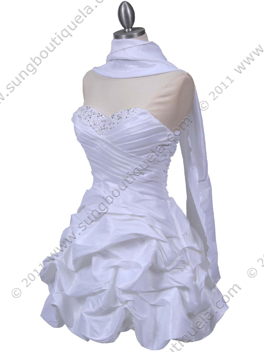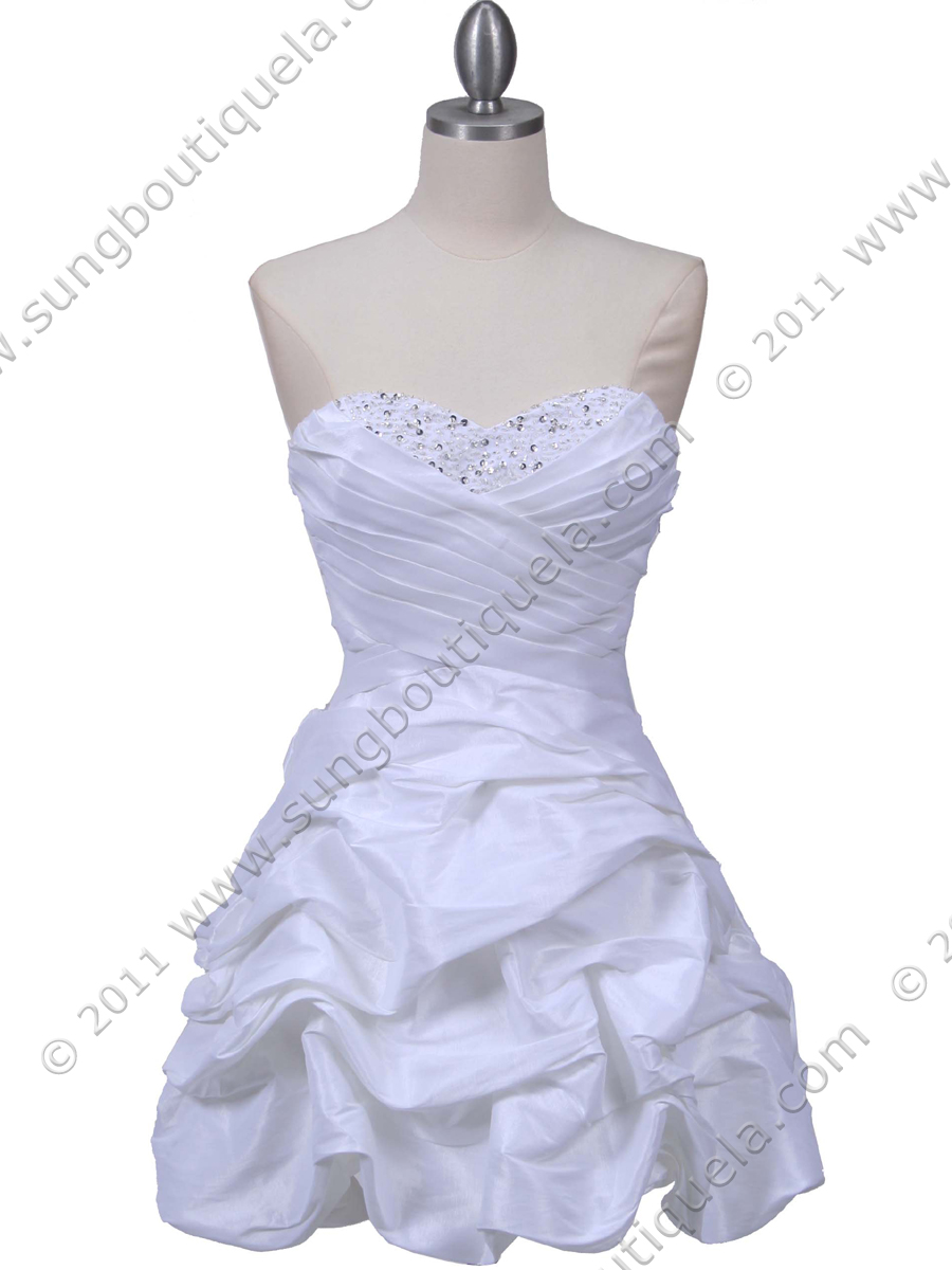 This beautiful taffeta strapless cocktail dress features sparkling sequins and beads adorn the sweetheart neckline. Pleated bodice with crisscross back strap ensures the perfect fit. The bustled skirt finishes the look. - Matching shawl included. - Approx. 27 in. from underarm to hem. - 100% polyester. - Imported.