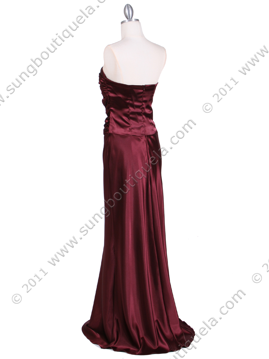 This elegant charmeuse evening gown features removable spaghetti straps with sweetheart neckline. Shirred bodice adorns with an antique-inspired pin above a full length skirt. Built-in boning shapes and supports the bodice. Fluid, floor-length charmeuse skirt with slight train adds elegance. Back center zipper. Matching shawl is included. Made in USA; 100% polyester.
