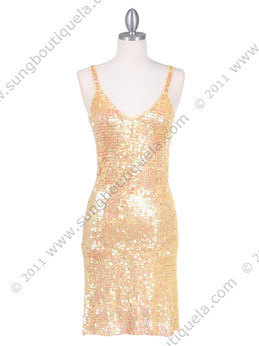 Dazzling crochet sequins dress features simple V neckline and allover sparkling square sequins. Make a statement and be a star. Dress is entirly hand crochet. Above knee length; slip-on; no lining. Imported; 100% rayon.